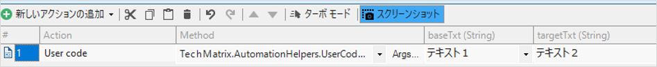 3)追加された User code アクションにて、選択したメソッドのパラメーターを設定します。