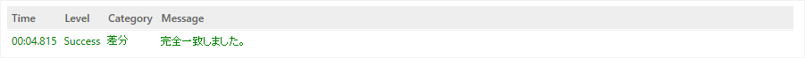 比較結果として差分が無い場合は、成功としてレポートされます。